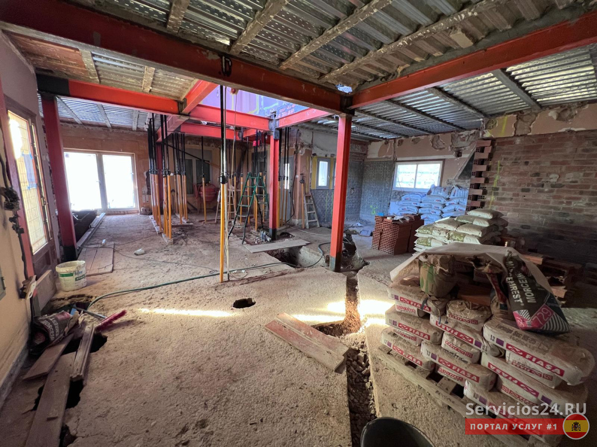 Все этапы строительных работ: - получение разрешительной документации - планировки ландшафта - работы тяжелой техники - заливка фундамента - возведение несущих стен и конструкций - плоские крыши и наклонные всех типов, даже вальц-профиль. - монтаж окон - фасад - все ком