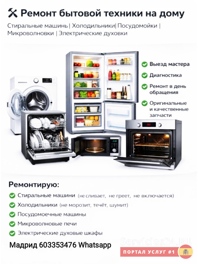 Ремонт холодильников, стиральных и посудомоечных машин.